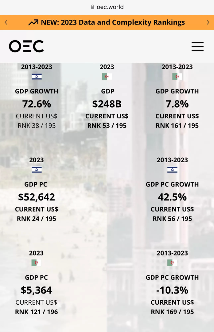 پرینتوجود موضع رسمی الجزایر در حمایت از فلسطین و ممنوعیت هرگونه رابطه با اسرائیل، دادههای سازمان ملل از یک تناقض تکاندهنده پرده برمیدارند، اینکه الجزایر با صادرات ۳۲.۲۹ میلیون دلاری در سال ۲۰۲۴، عملاً چهارمین شریک تجاری عربی اسرائیل بوده است.