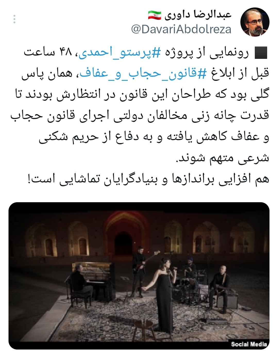 تحلیل عبدالرضا داوری درباره کنسرت پرستو احمدی