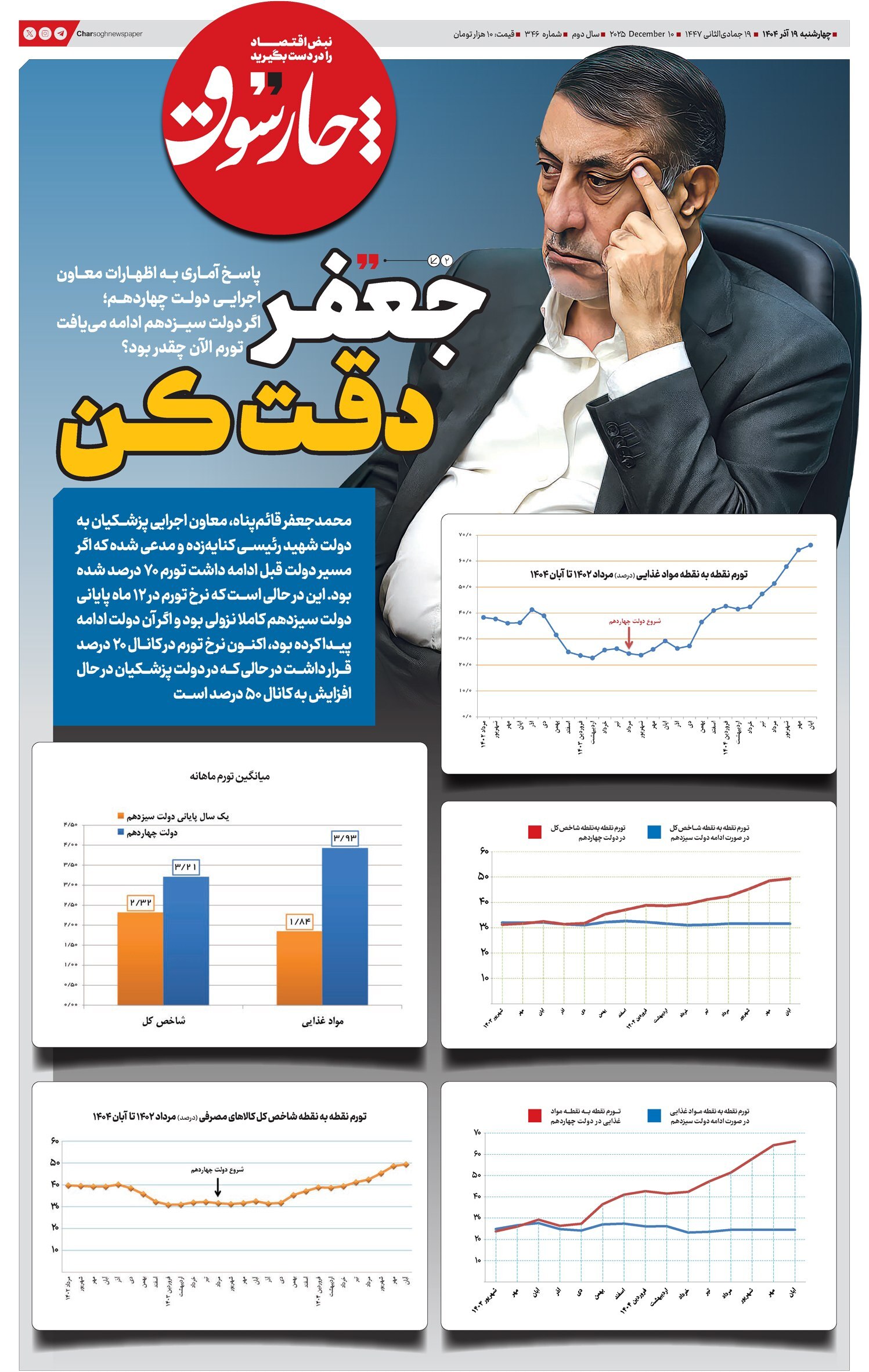 به گزارش نیمروز 24 به نقل از تابناک؛ در حالی که در دولت پزشکیان، تورم دوباره افزایشی شده و در همین مدت کوتاه، تورم بعضی از اقلام خوراکی به بالای ۱۰۰ درصد رسیده و حتی صدای طرفداران دولت را هم درآورده است، محمدجعفر قائم‌پناه، معاون اجرایی پزشکیان به دولت شهید رئیسی تکه‌ انداخته و مدعی شده که اگر مسیر دولت قبل ادامه داشت تورم ۷۰ درصد شده بود.