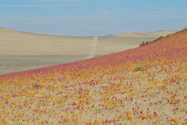 مناطق بزرگی که گل در آنها روییده مساحت هایی بین ۱۱۵ تا ۱۵۵ مایل مربع را می پوشانند. به طور معمول پس از بارش های زمستانی که ممکن است مساحت ۵۸۰۰ مایل مربع را در بر گیرند، به طور معمول صحرا در بازه سپتامبر تا اکتبر مملو از گل می شود در این حالت حدود ۲۰۰ گونه گل شکوفه می دهند.