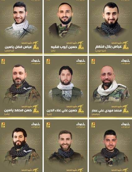 جنبش مقاومت اسلامی لبنان بامداد چهارشنبه اسامی و تصاویر ۹ نفر از رزمندگان خود که طی چند ساعت قبل توسط رژیم صهیونیستی به شهادت رسیدند را منتشر کرد.