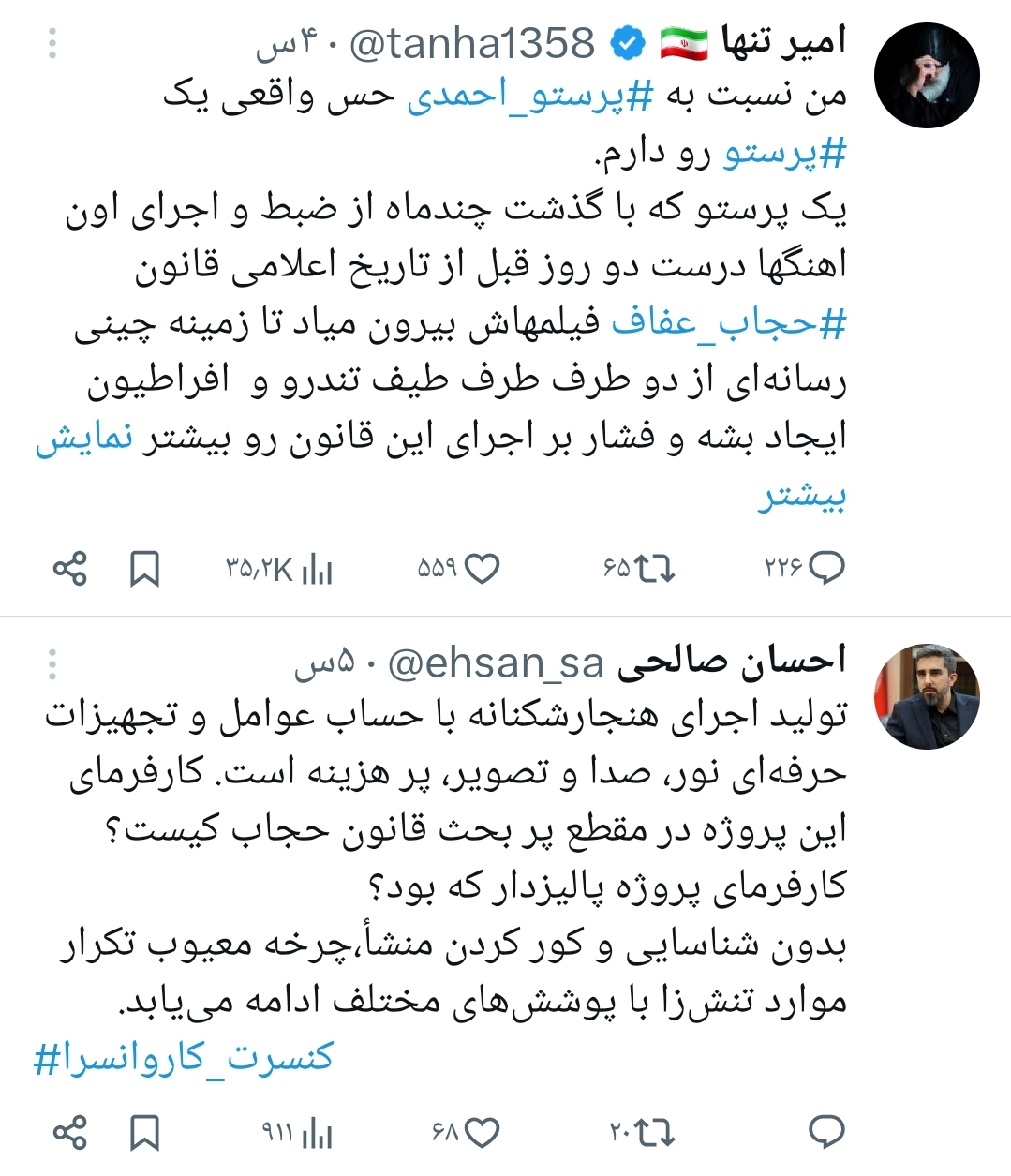واکنش دو فعال رسانه ای به کنسرت پرستو احمدی
