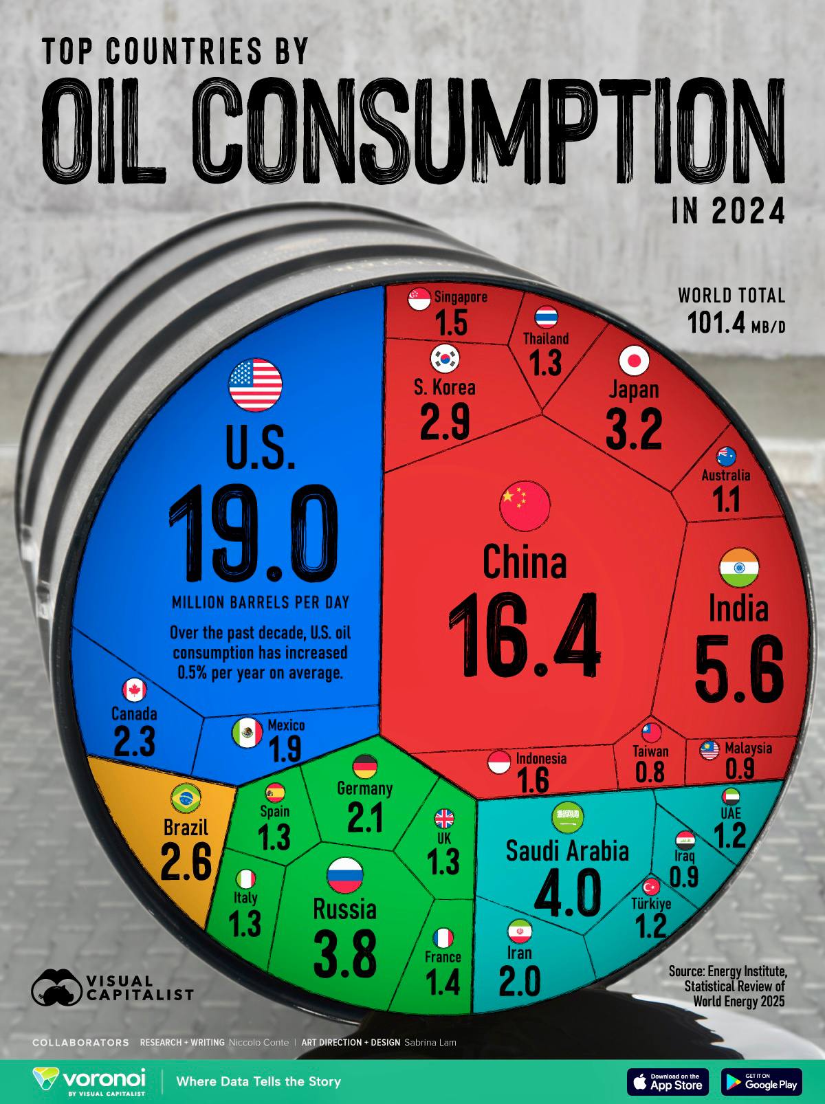 رده‌بندی پرمصرف‌ترین کشورها در نفت را دراینفوگرافی زیر مشاهده می کنید.